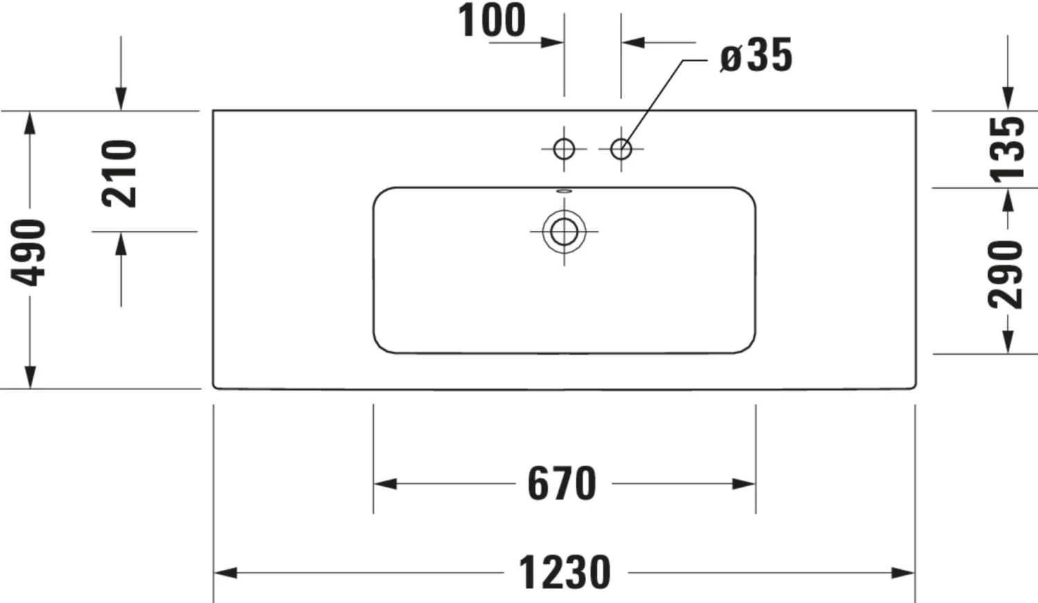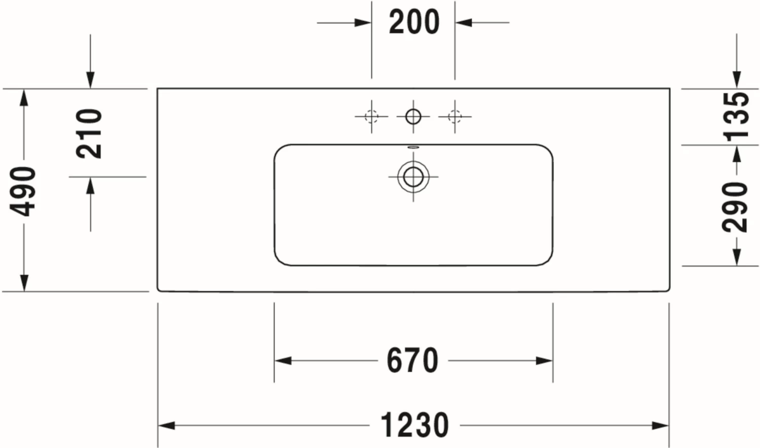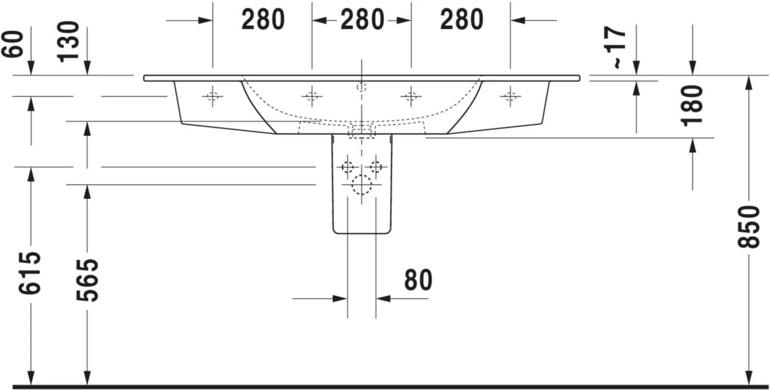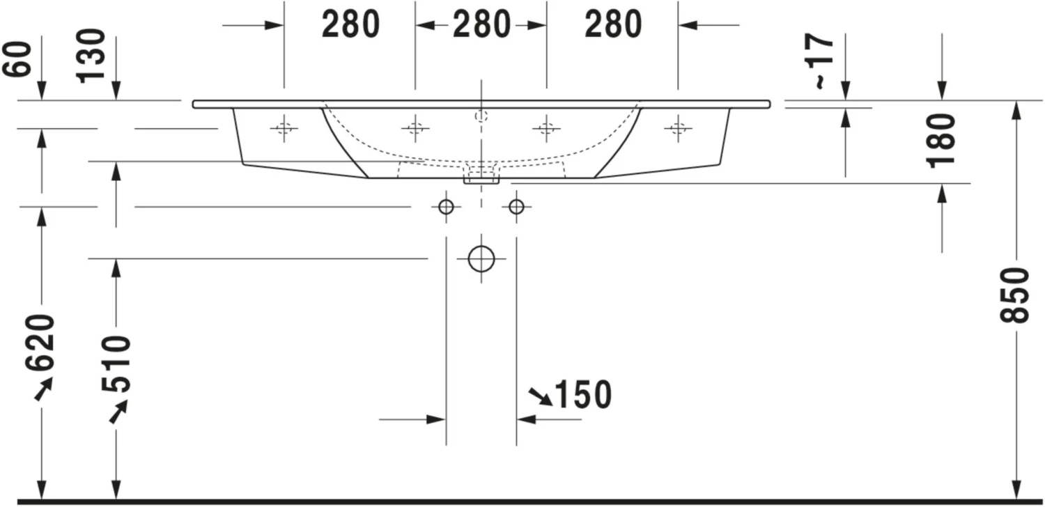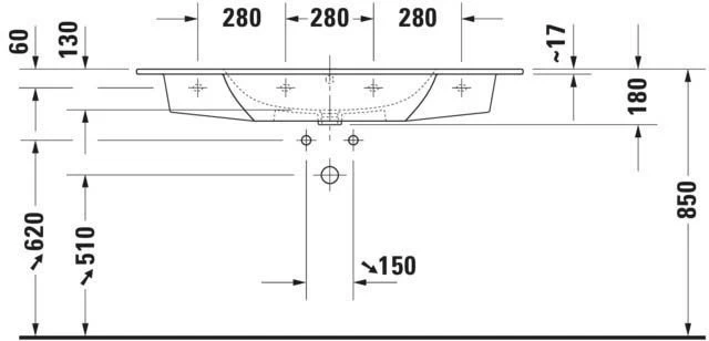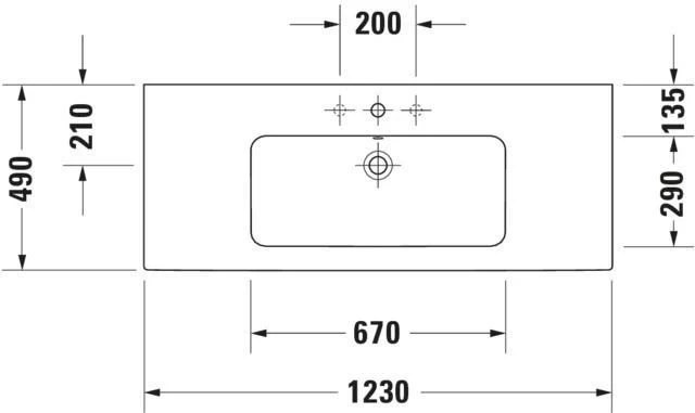 - 123 x 49 cm, weiß seidenmatt, ohne Hahnloch, mit Überlauf, mit Hahnlochbank