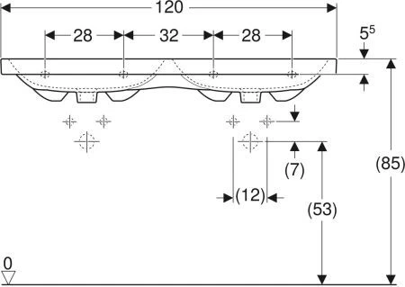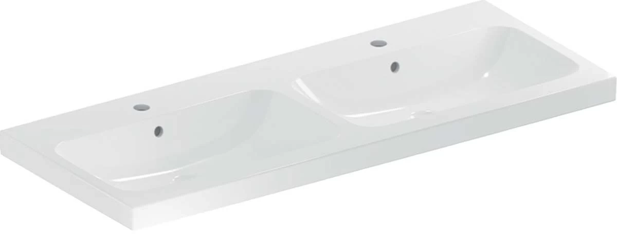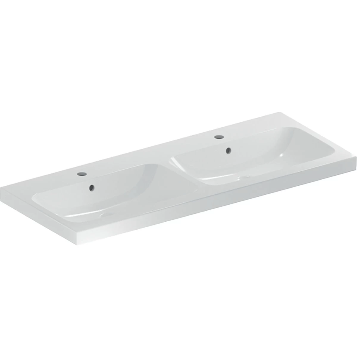 Geberit ICon Light Doppelwaschtisch 501838002 120x48cm, Hahnloch Rechts Und Links, Mit Überlauf, Weiß KeraTect