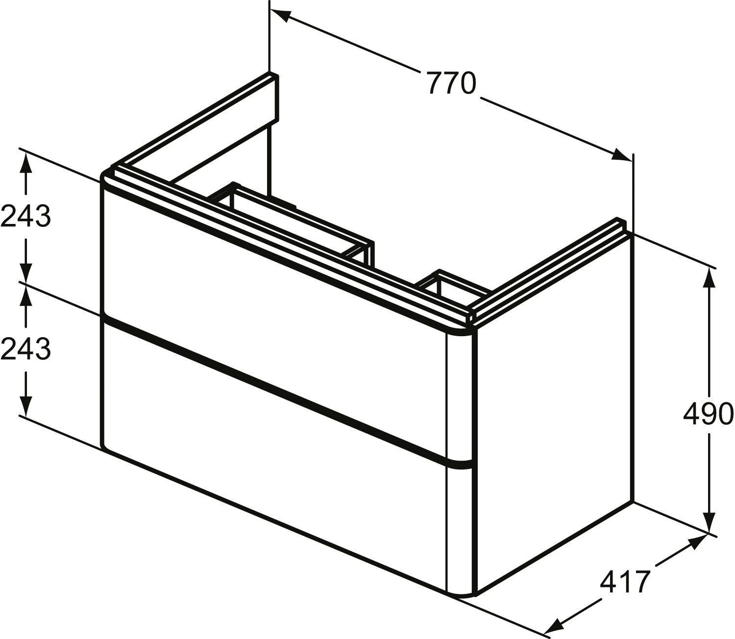 Ideal Standard Adapto Waschtisch-Unterschrank T4301WG 2 Auszüge, 770 X 410 X 490 Mm, Hochglanz Weiß Lackiert