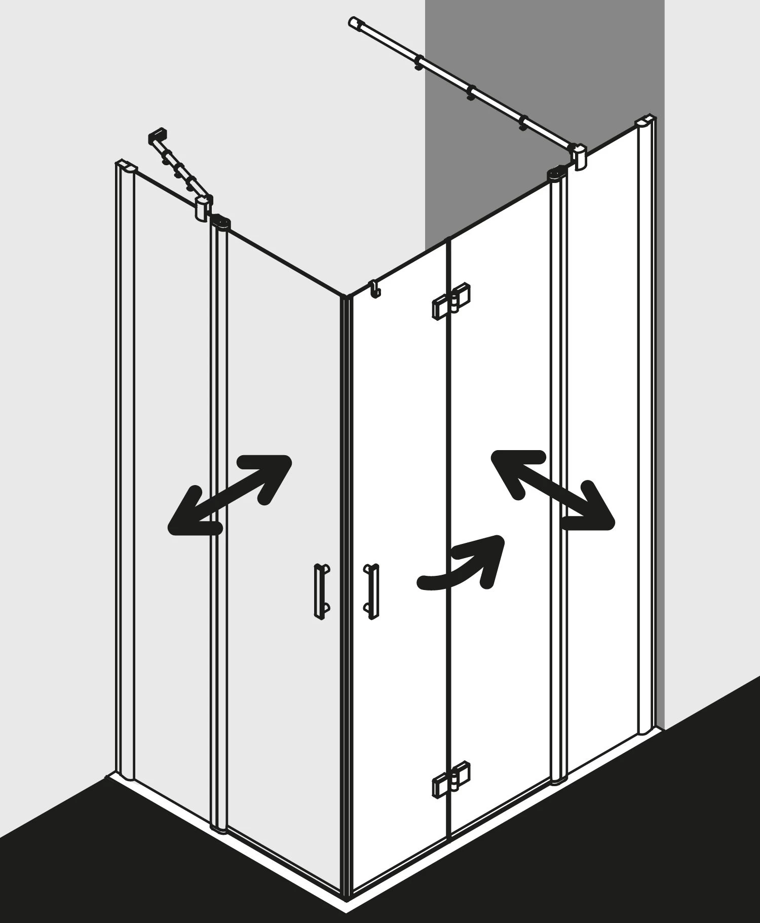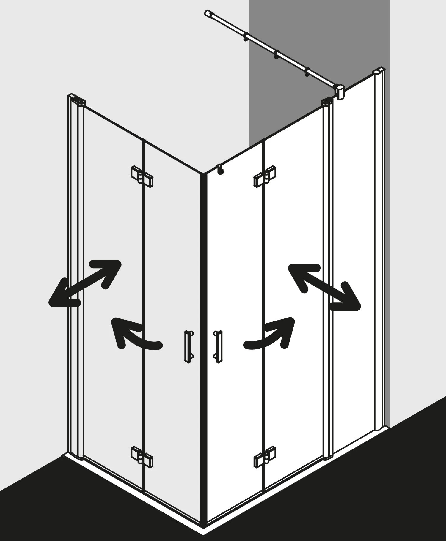 - mit zwei Glasflügeln – im Gelenkprofil 90° nach innen und außen schwenkbar
