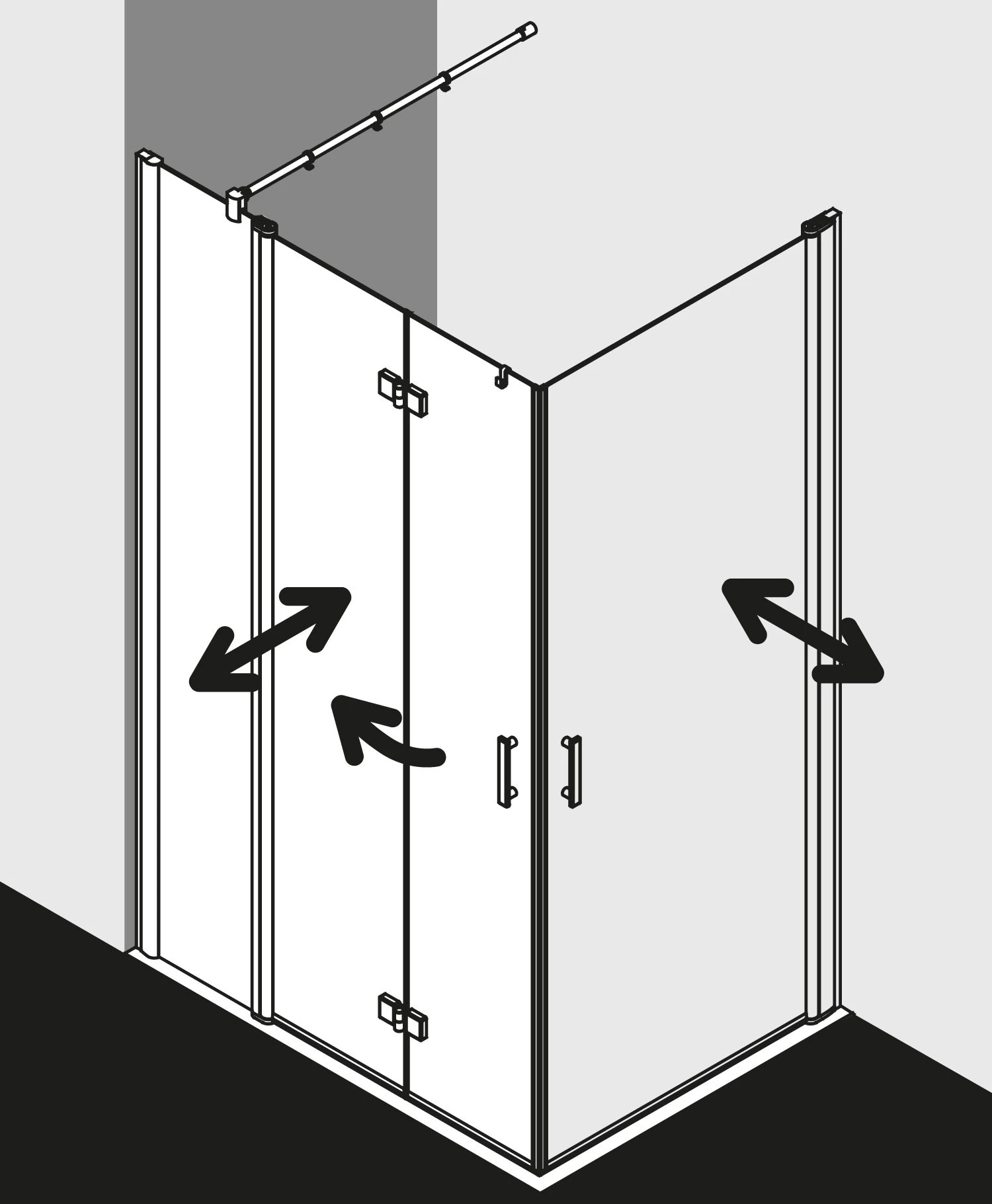 Kermi Diga Eckeinstieg-Hälfte Pendel-Falttür m Festfeld DIF2R120182PK