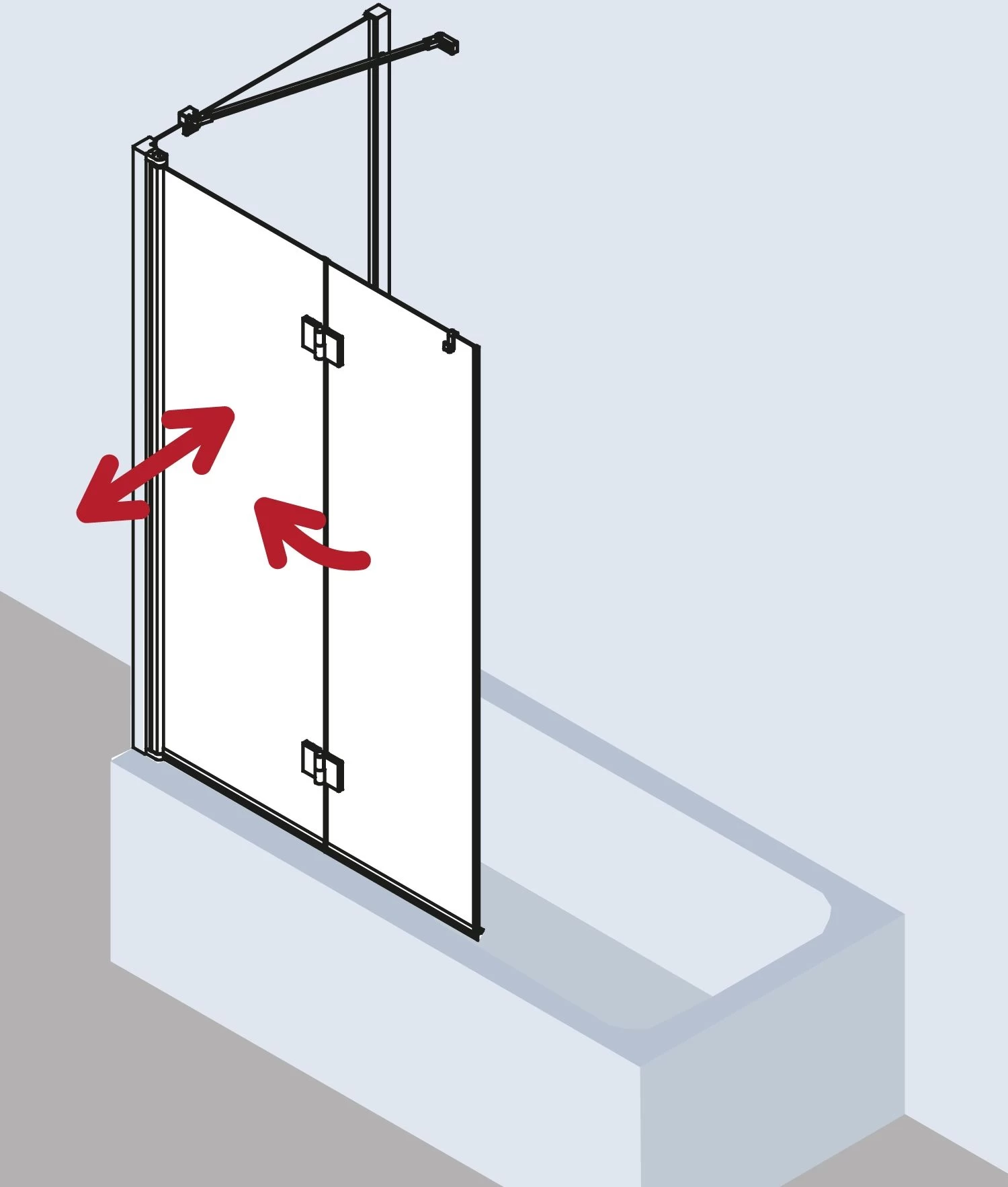 - mit zwei Glasflügeln – im Wandgelenkprofil 90° nach innen und außen schwenkbar