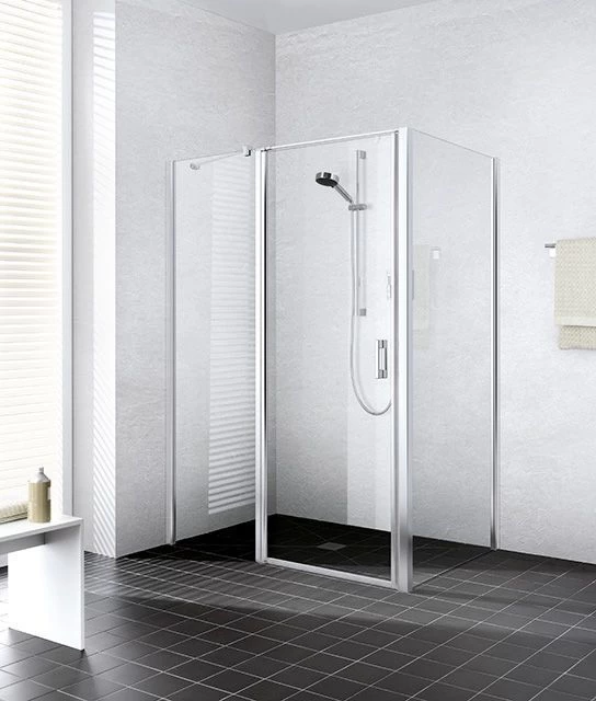 Kermi Liga Pendeltür Mit Festfeld Für Seitenwand LI1GR100201PK 100x200cm, Silber Mattglanz, ESG Klar Clean, Rechts, Auf Duschwanne