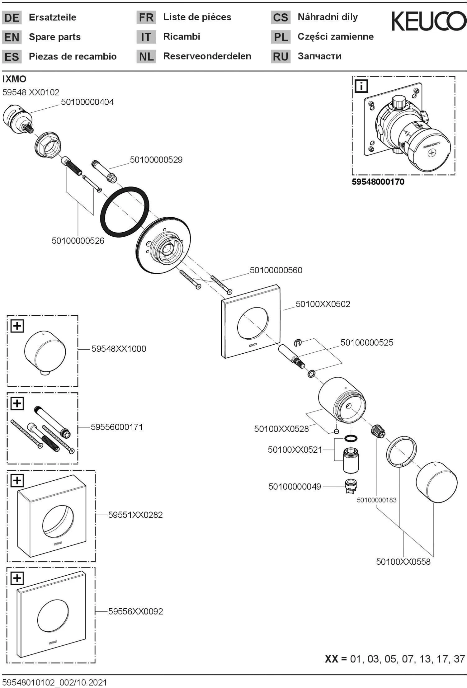 Keuco Ixmo Fertigmontageset 59548030102 Unterputz-3-Wege-Umstellventil, Schlauchanschluss, Griff Pure, Eckig, Bronze Gebürstet