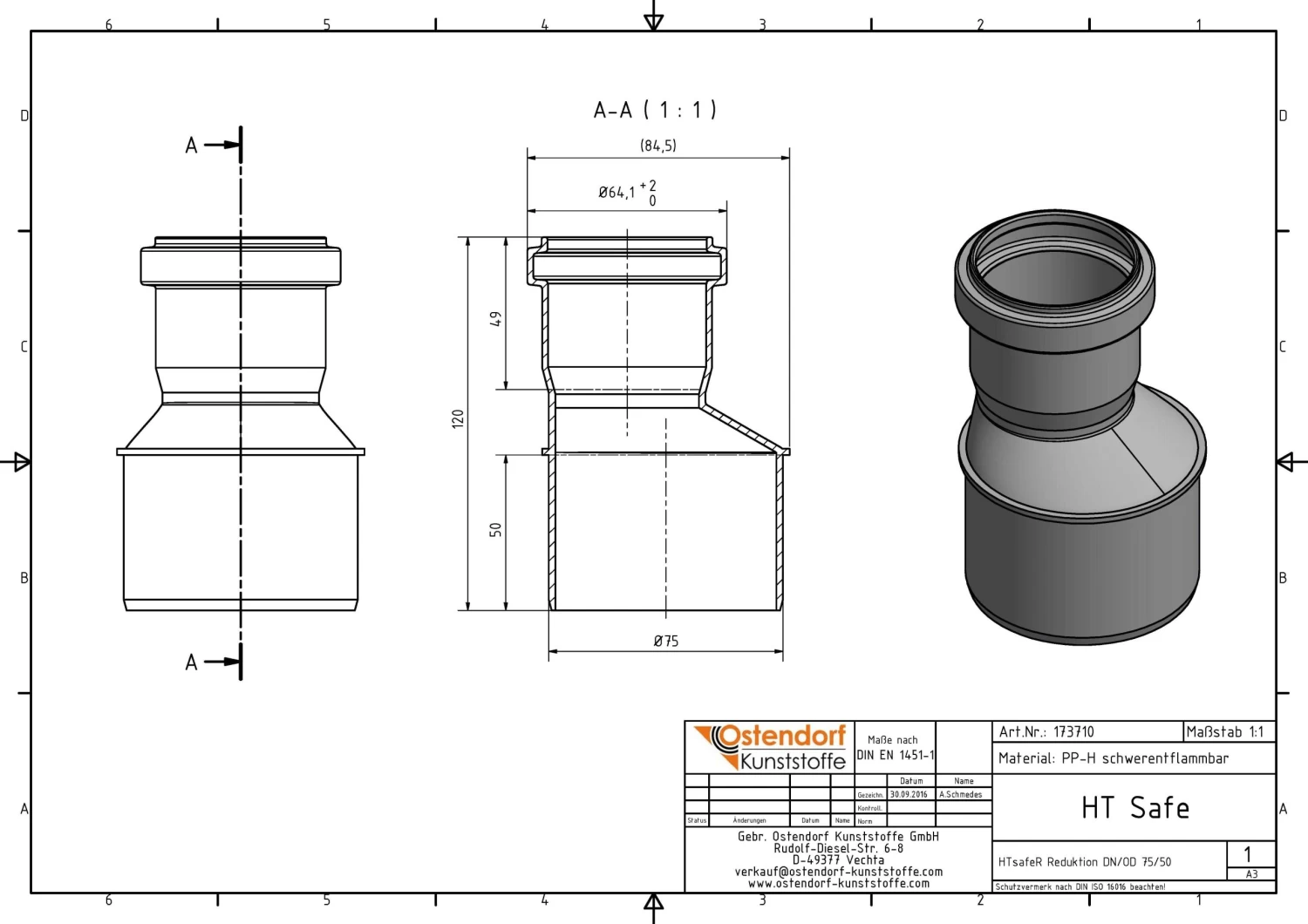 Ostendorf HTsafe HTsafe-Reduktion 173710 DN/OD 75×50