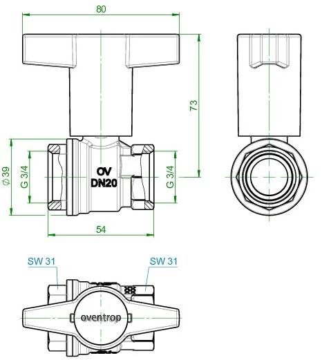 Oventrop Kugelhahn Optibal Knebelgriff 1077106 DN20, 3/4″ Innengewinde, PN16, Messing