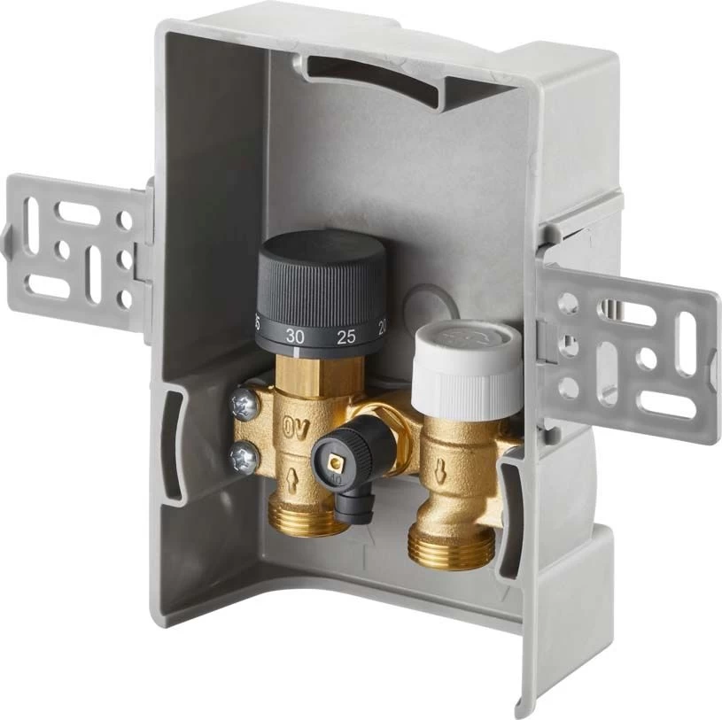 - bestehend aus: Wandeinbaukasten mit voreinstellbarem Thermostatventil