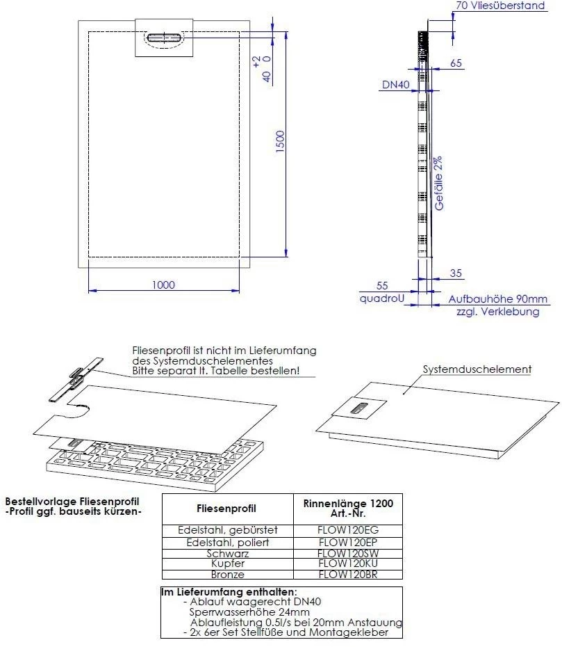 Schedel Line Flow Duschelement LI2KF601015 100 X 150 Cm, Einseitiges Gefälle