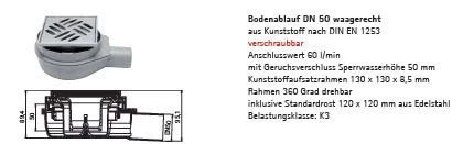Schedel MultiStar Plan Bodenablauf SKR32102 Waagerecht, 60 L/min, DN 50, Nach DIN EN 1253