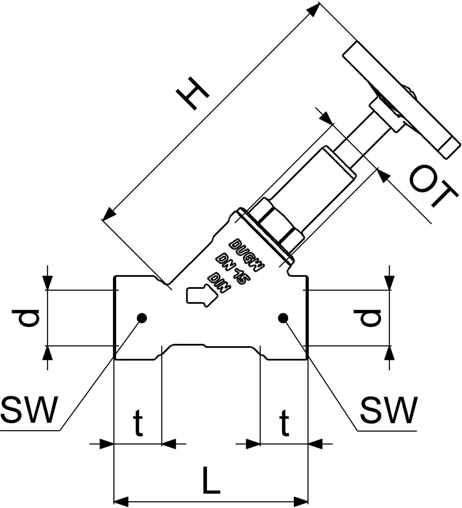 Schlösser Freistromventil 0015051500001 DN 15, Rp 1/2, Ohne Entleerung, Steigende Spindel
