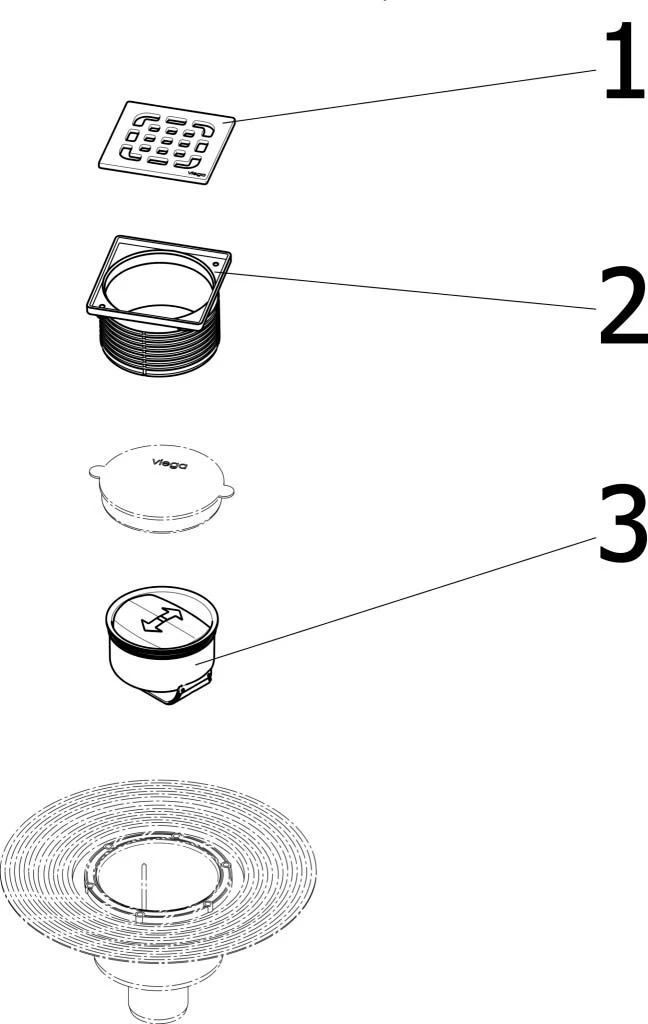 Viega Badablauf Advantix 4936.3 Kunststoff Grau, DN 50, Ablauf Senkrecht, Rahmen Edelstahl